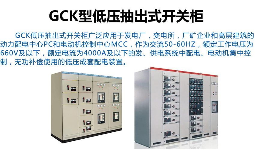 GCK-低壓抽出式開關柜適用于發(fā)電廠、冶金、石油化工、輕工紡織、港口碼頭、大樓賓館等場所作為交流三相四線或五線制、電壓380V、頻率50H2電力系統(tǒng)的配電和電動機控制之用。