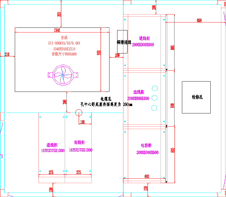 【主要參數(shù)】:S11-500KVA變壓器--高低壓配電柜--品字形排列