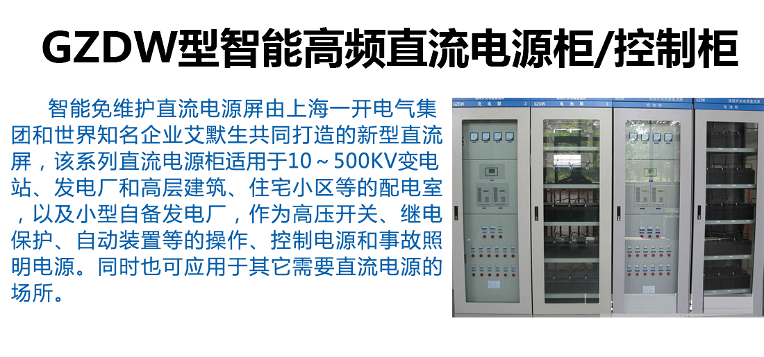 本智能免維護(hù)直流電源屏由上海一開(kāi)電氣集團(tuán)和世界知名企業(yè)艾默生共同打造的新型直流屏,該系列直流電源柜適用于10~500kV變電站、發(fā)電廠(chǎng)和高層建筑、住宅小區(qū)等的配電室,以及小型自備發(fā)電廠(chǎng),作為高壓開(kāi)關(guān)、繼電保護(hù)、自動(dòng)裝置等的操作、控制電源和事故照明電源。同時(shí)也可應(yīng)用于其它需要直流電源的場(chǎng)所。